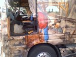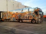 ) das dingen ist echt an sämtlichen stellen geairbrusht....selbst da wo man nix sieht...ich habe fotos von der entstehung des lkws gesehen und ein kleines video...der airbrusher stand da ungelogen mit 3 kleinen pistolen in JEDER hand und hat die farben beim airbrushen gemischt....sowas hat man noch nie gesehen.....680 std brushen steckt in dem lkw drin....Anhänge